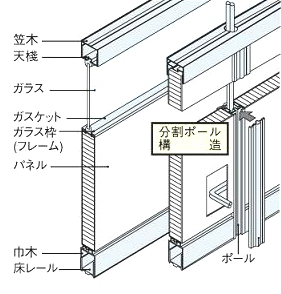 - スチールパーティションは、柱を中心として、表・裏の2枚のボードで出来ています。石膏ボードが内臓されているため、防火性や遮音性に優れています。